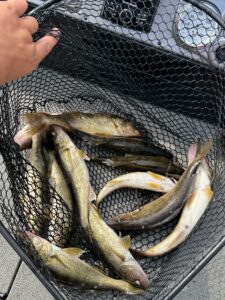 This week we did the typical mid to late summer techniques to catch fish! We caught some jigging, some lindy rigging, some on bobbers, some trolling, and I’ve heard of some being caught on spinner rigs! Any technique you want to do can produce some fish, the biggest key is finding the active fish. If you’re on pods and they won’t bite, they probably won’t for a while as there is so much food in the system they are full!